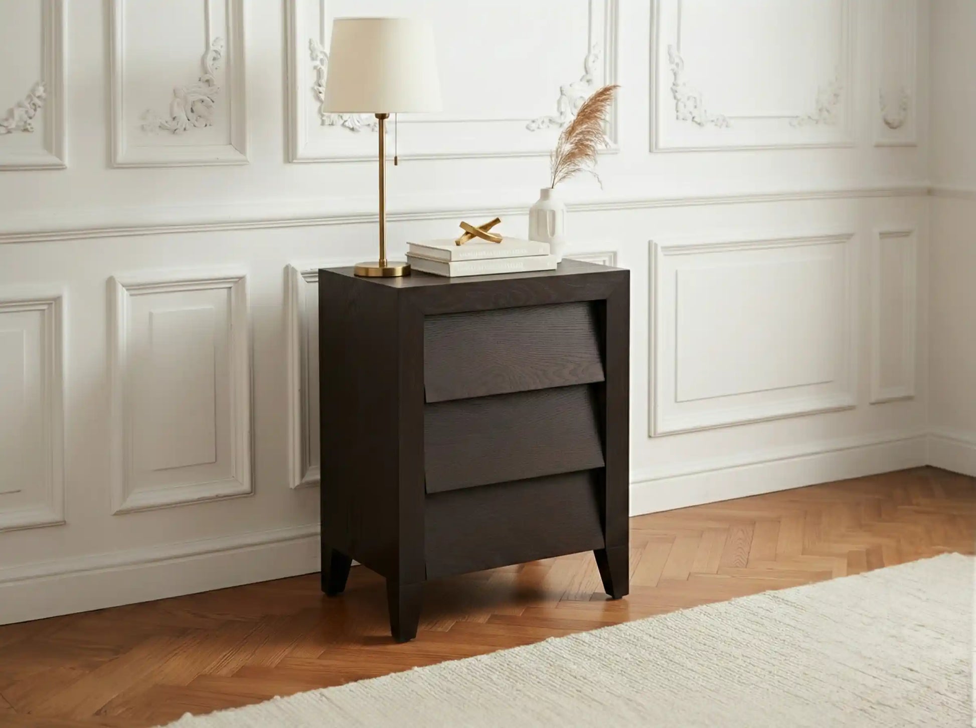 The Ana Bedside Table is available in a beautiful chocolate finish. Featuring three spacious drawers with gorgeous tapered detailing. Add a relaxing and contemporary feel to a bedroom interior scheme by using the full Ana range.