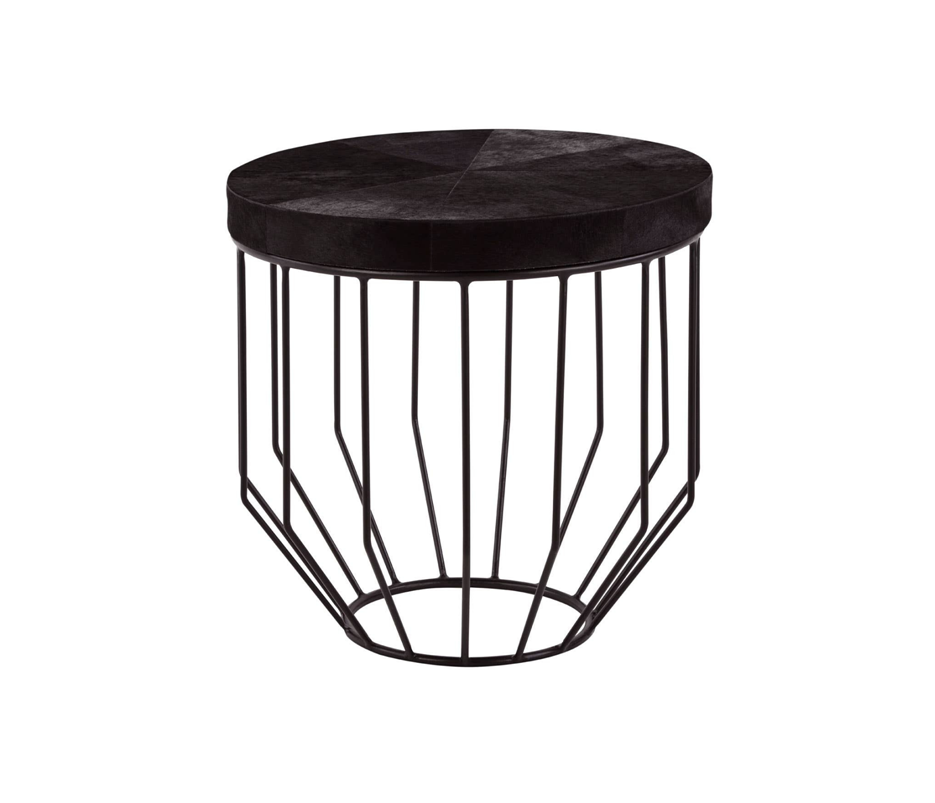 In stock & ready for deliveryThe Boutique-style side table is topped with black 'hair on hide' supple leather. The leather top has a black colour that complements the powder coated black iron wire-frame that makes it a part of luxurious Chelsea Townhouse collection.