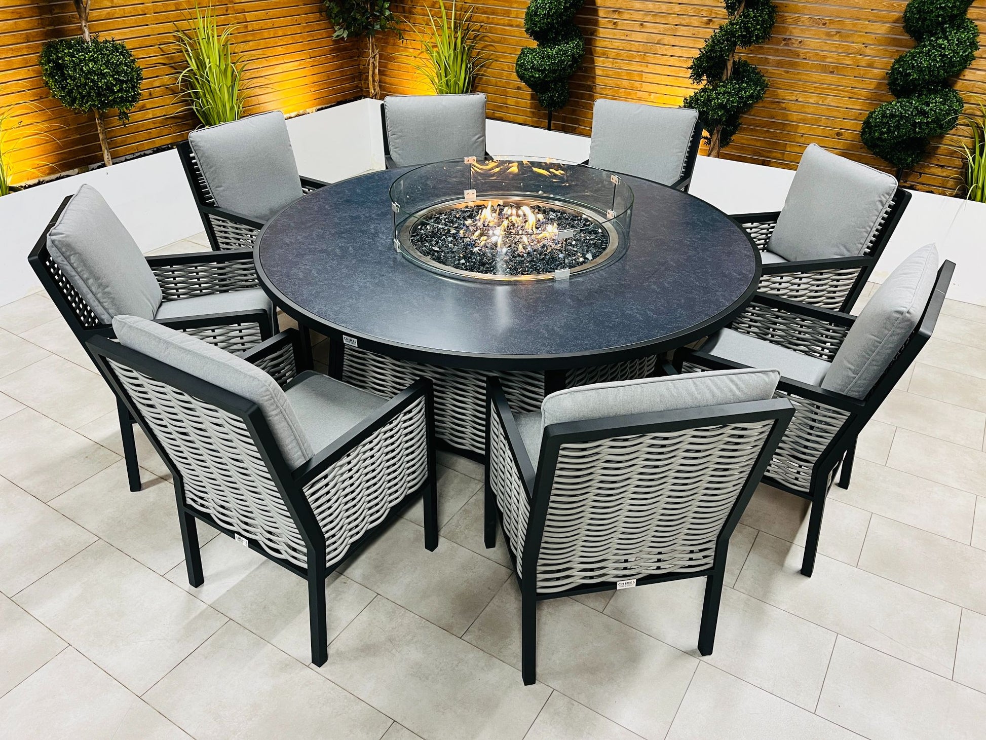 Chimes - Monaco Aluminium 8 Seat Round Dining Set - 1.8 Meter Round Table With Firepit - Rope Weave