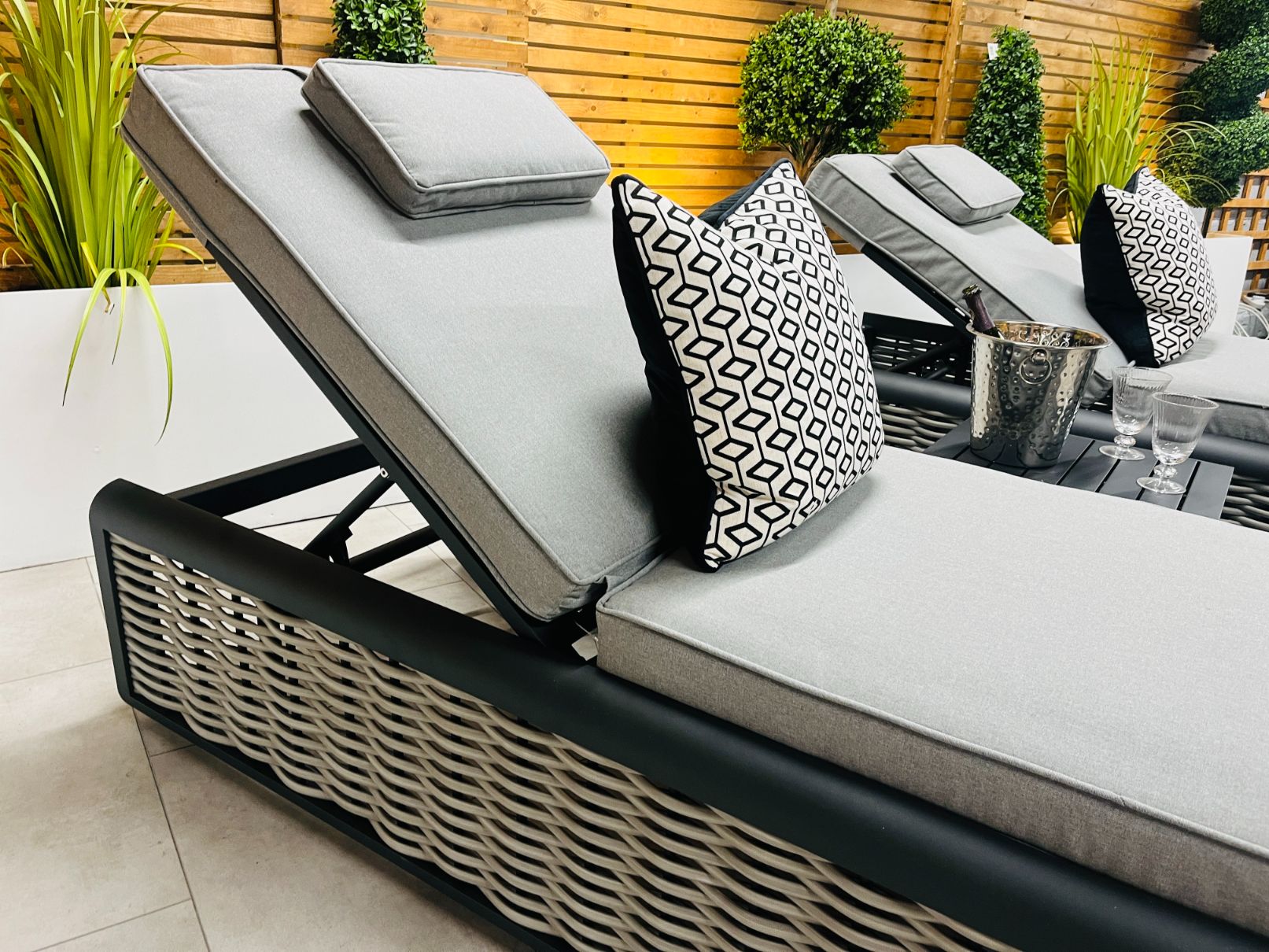 The Monaco - Aluminium Sun Lounger Set With coffee Table in Rope Weave is our premium luxury aluminium range that is not only low maintenance but has extra thick cushions which brings the ultimate comfort experience to your garden.