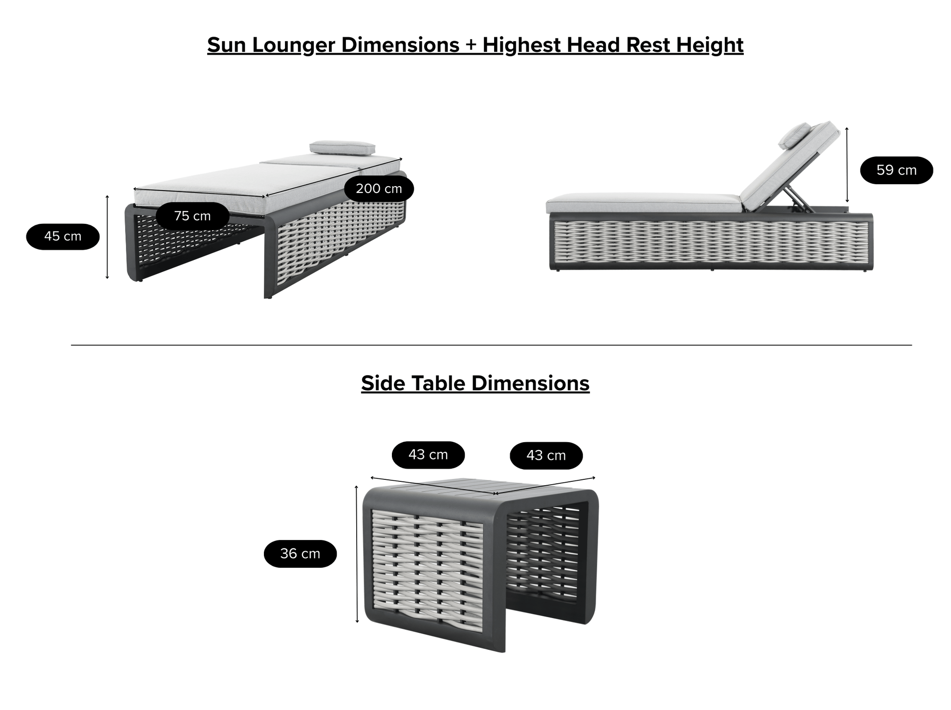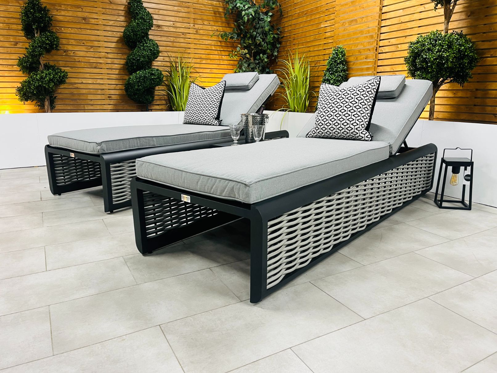 Chimes - Monaco Aluminium Sun Lounger Set with Coffee Table - Rope Weave