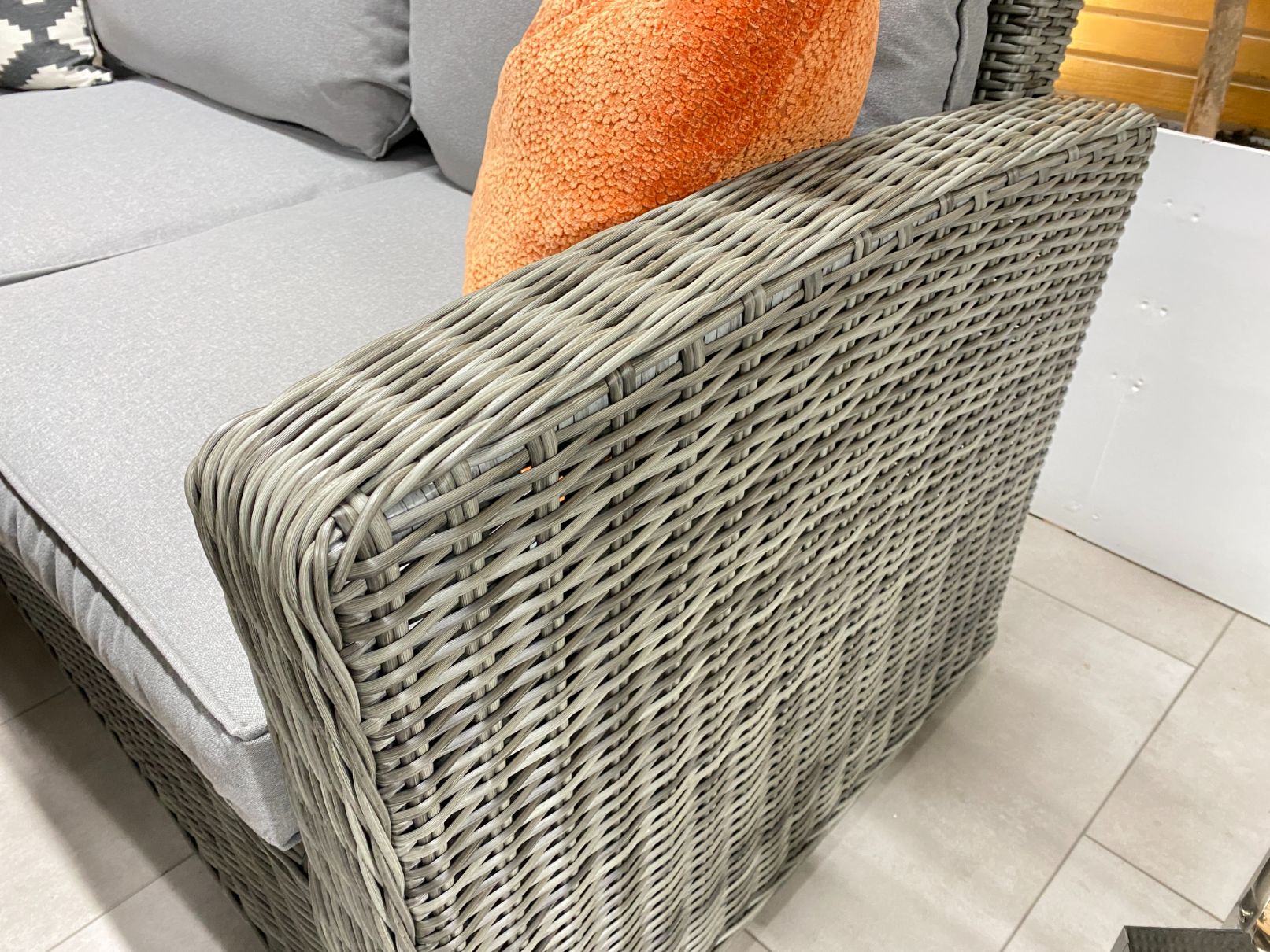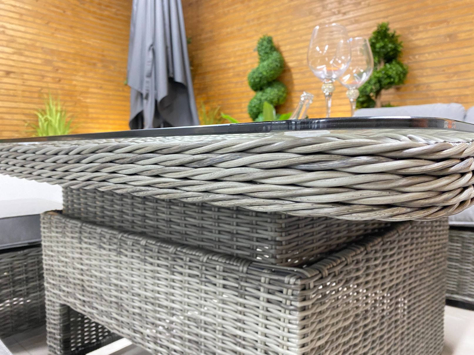 Our Prestige Grey Range is built to the highest standard and comes with a 5 year warranty. The weave is a mixture of high quality half round & full weave which is constructed of HDPE Rattan the highest grade available meaning it will not go brittle or fade and is resistant to UV. Our frame work is made from a dual core aluminium frame unlike many of our competitors which gives much added strength. All of our Prestige Grey range come with Powder Coated Aluminium frames which makes this set 100% resistant to corrosion and rust giving you peace of mind for many years to come.