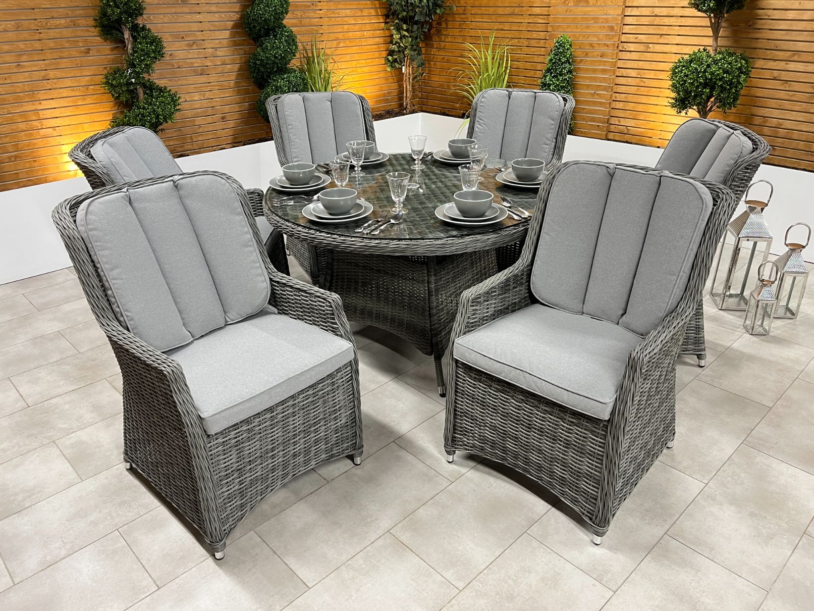 Chimes - Prestige Grey Madrid 6 Seat Round Dining Set - 1.3 Meter Round Table - LOW STOCK