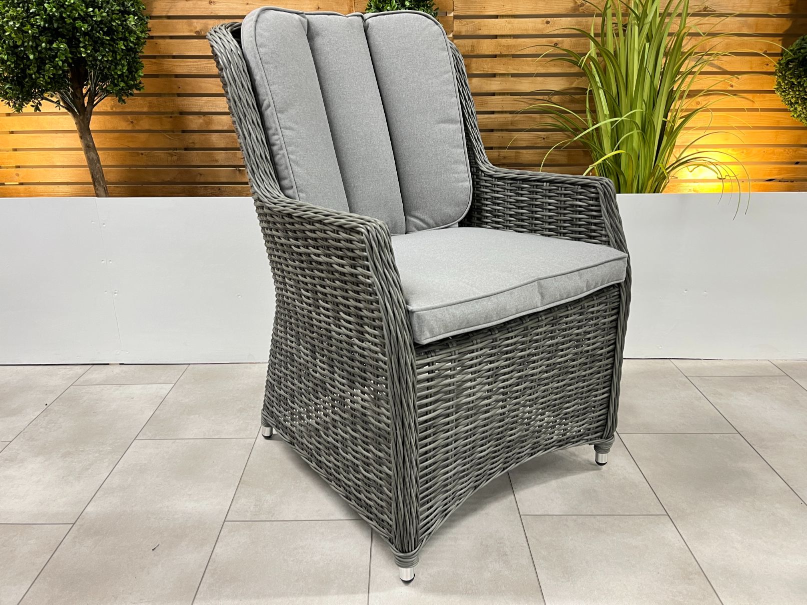 The Madrid chairs are our premium range and are designed with ultimate comfort in mind. With full round weave around the edge of the arms and half round weave for the rest of the chair you are getting the best quality finish available. The high back chairs are ideal for dining and make the perfect evening chair to relax in.