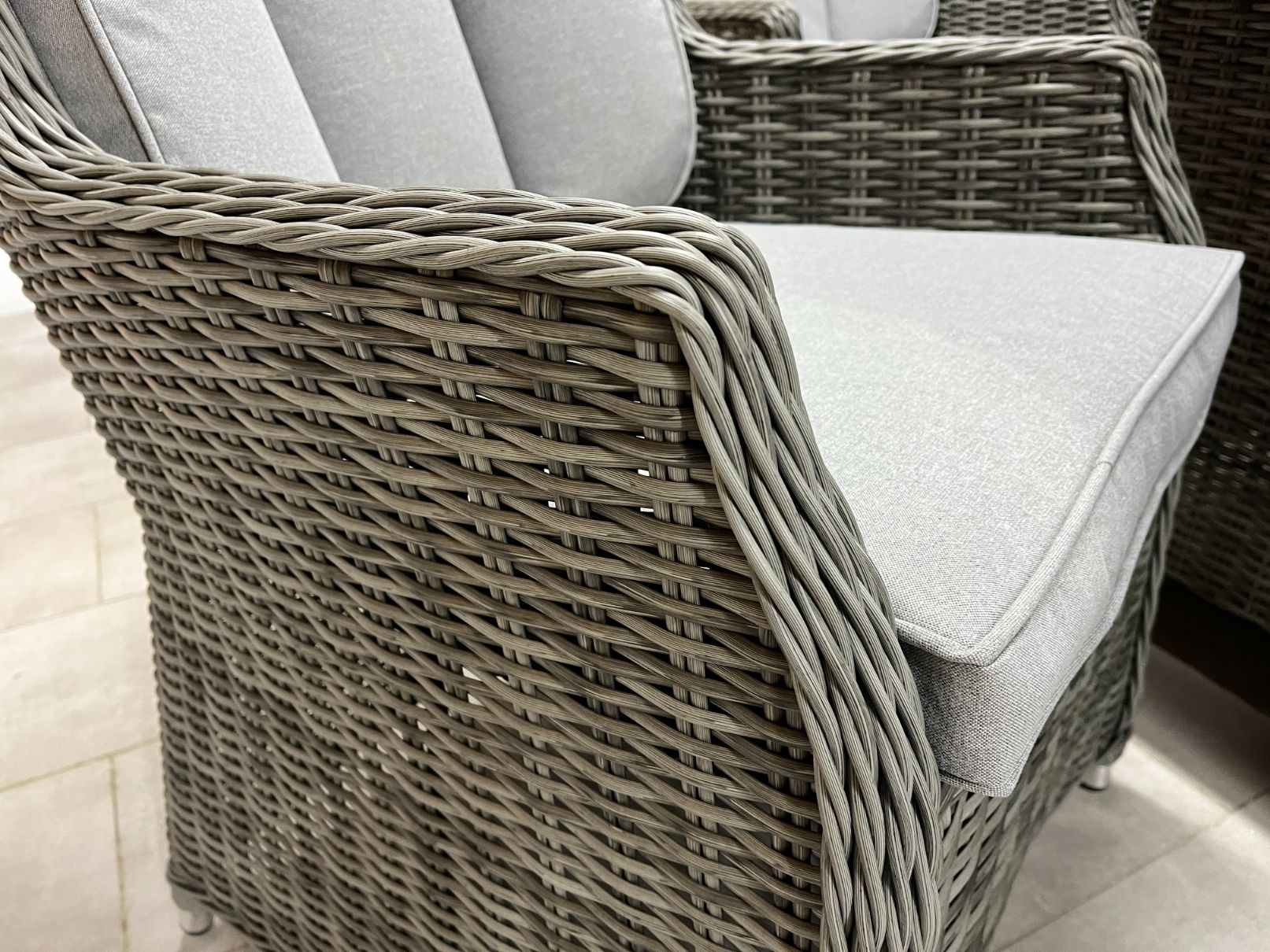 Our Prestige Grey Range is built to the highest standard and comes with a 5 year warranty. The weave is a mixture of high quality half round & full weave which is constructed of HDPE Rattan the highest grade available meaning it will not go brittle or fade and is resistant to UV. Our frame work is made from a dual core aluminium frame unlike many of our competitors which gives much added strength. All of our Prestige Grey range come with Powder Coated Aluminium frames which makes this set 100% resistant to corrosion and rust giving you peace of mind for many years to come.