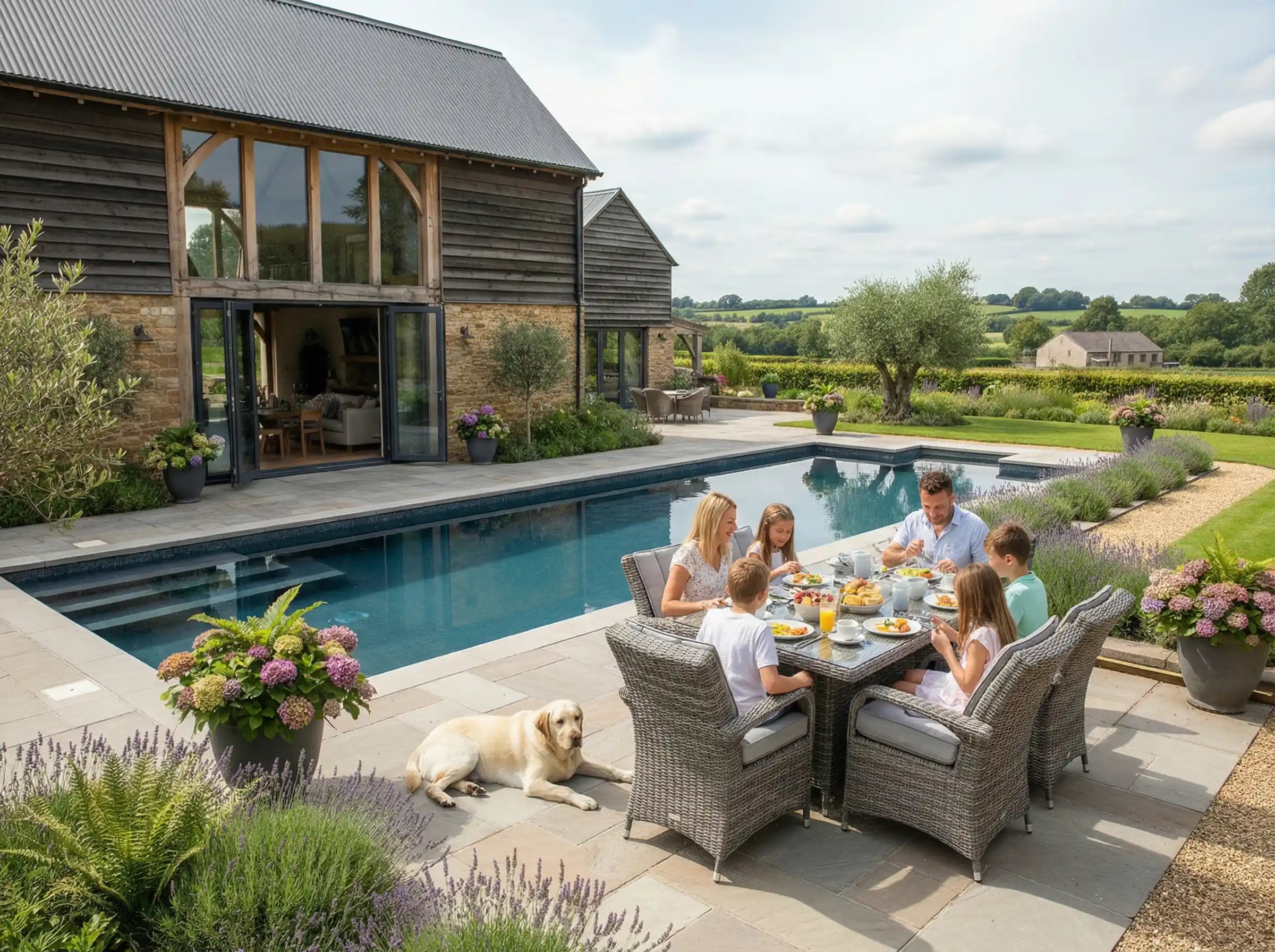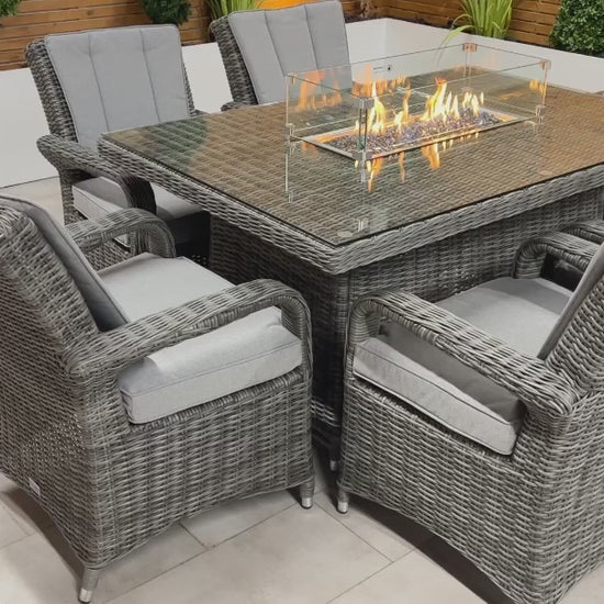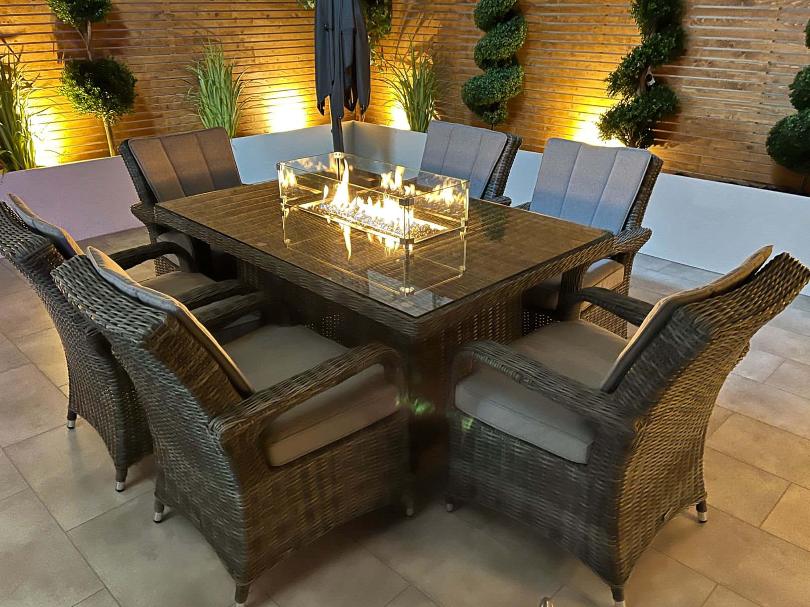 Chimes - Prestige Grey Valencia 6 Seat Rectangular Dining Set - 1 Meter x 1.5 Meter Table With Firepit