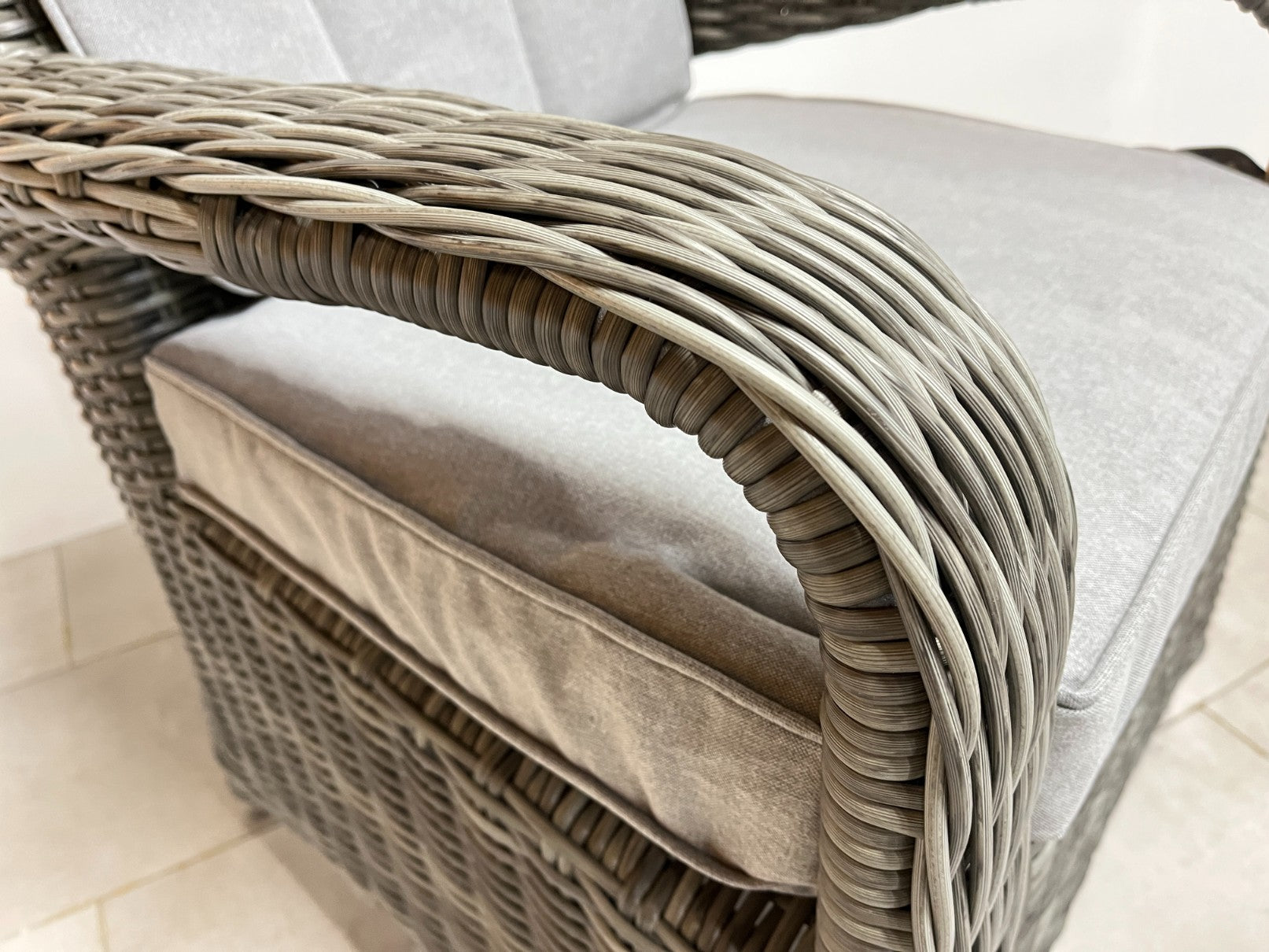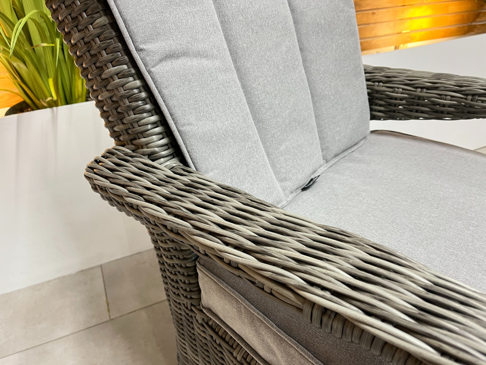 Our Chimes Living - Prestige Grey Valencia 6 Seat Round Firepit Dining Set is built to the highest standard and comes with a 5 year warranty. The weave is a mixture of high quality half round & full weave which is constructed of HDPE Rattan the highest grade available meaning it will not go brittle or fade and is resistant to UV. Our frame work is made from a dual core aluminium frame unlike many of our competitors which gives much added strength. All of our Prestige Grey range come with Powder Coated Aluminium frames which makes this set 100% resistant to corrosion and rust giving you peace of mind for many years to come.