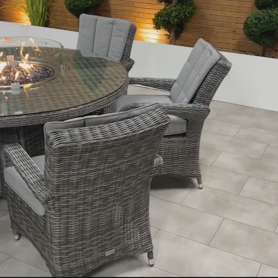 Chimes - Prestige Grey Valencia 6 Seat Round Dining Set - 1.5 Meter Round Table With Firepit