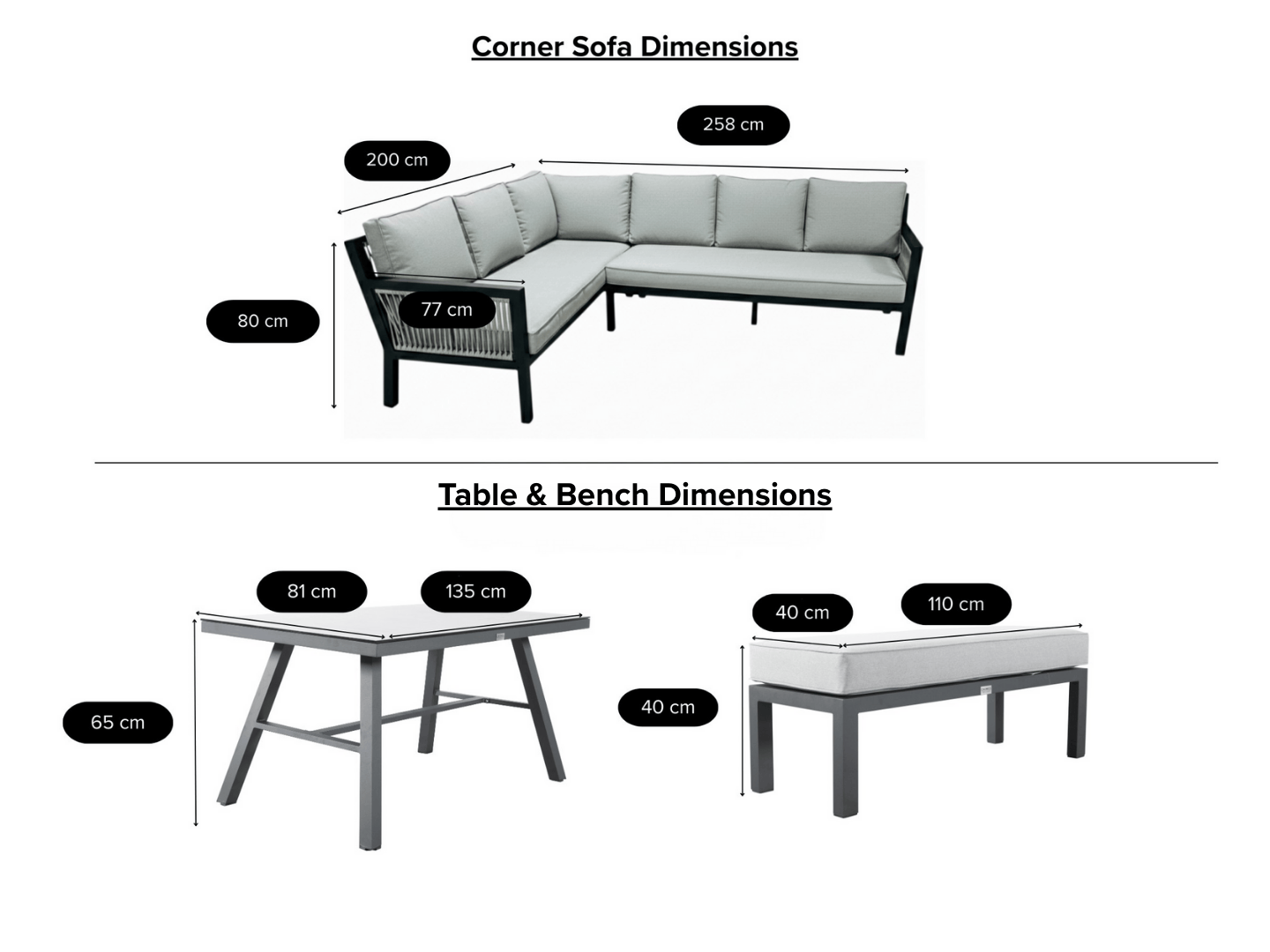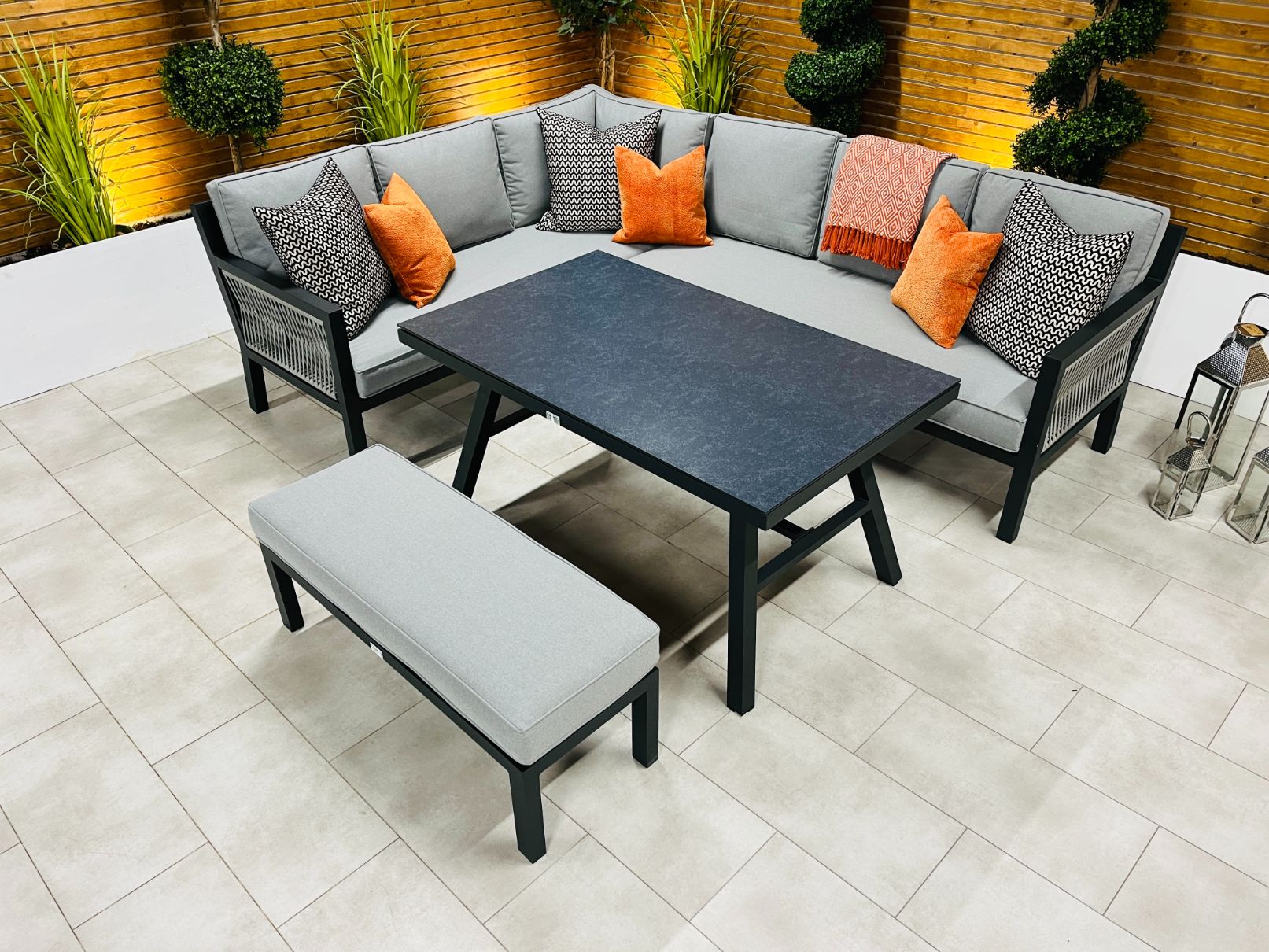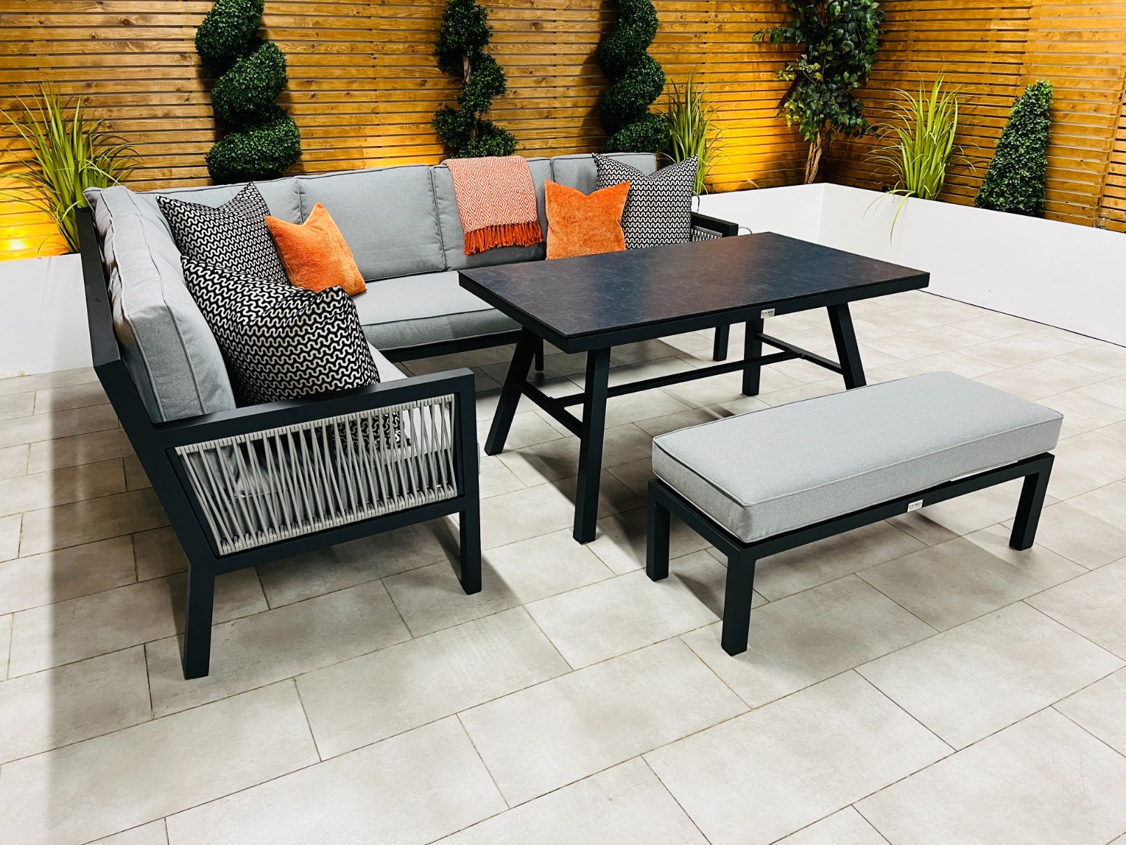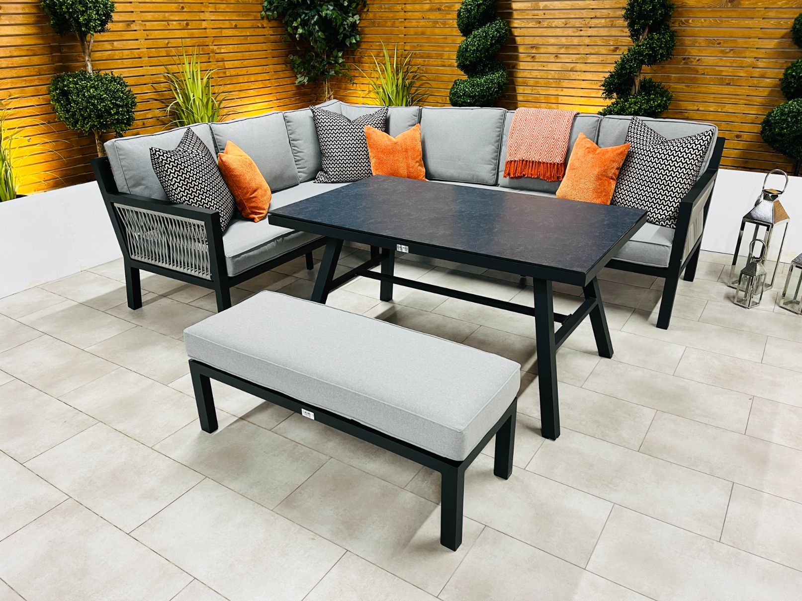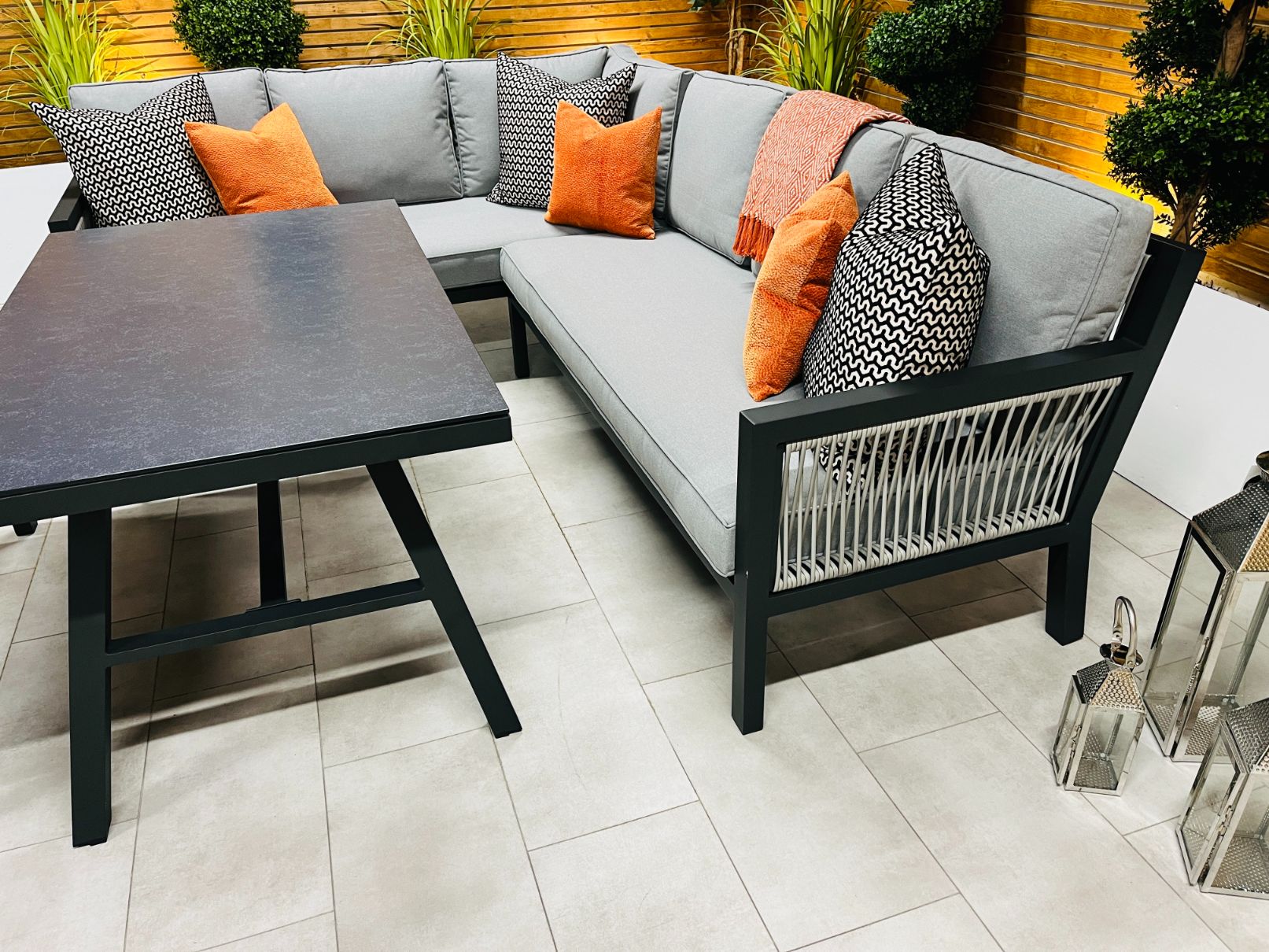 The Chimes - Seville Aluminium Casual Corner Dining Set - Left Hand is our new corner dining set with rope finish which comes with a 5 year warranty.