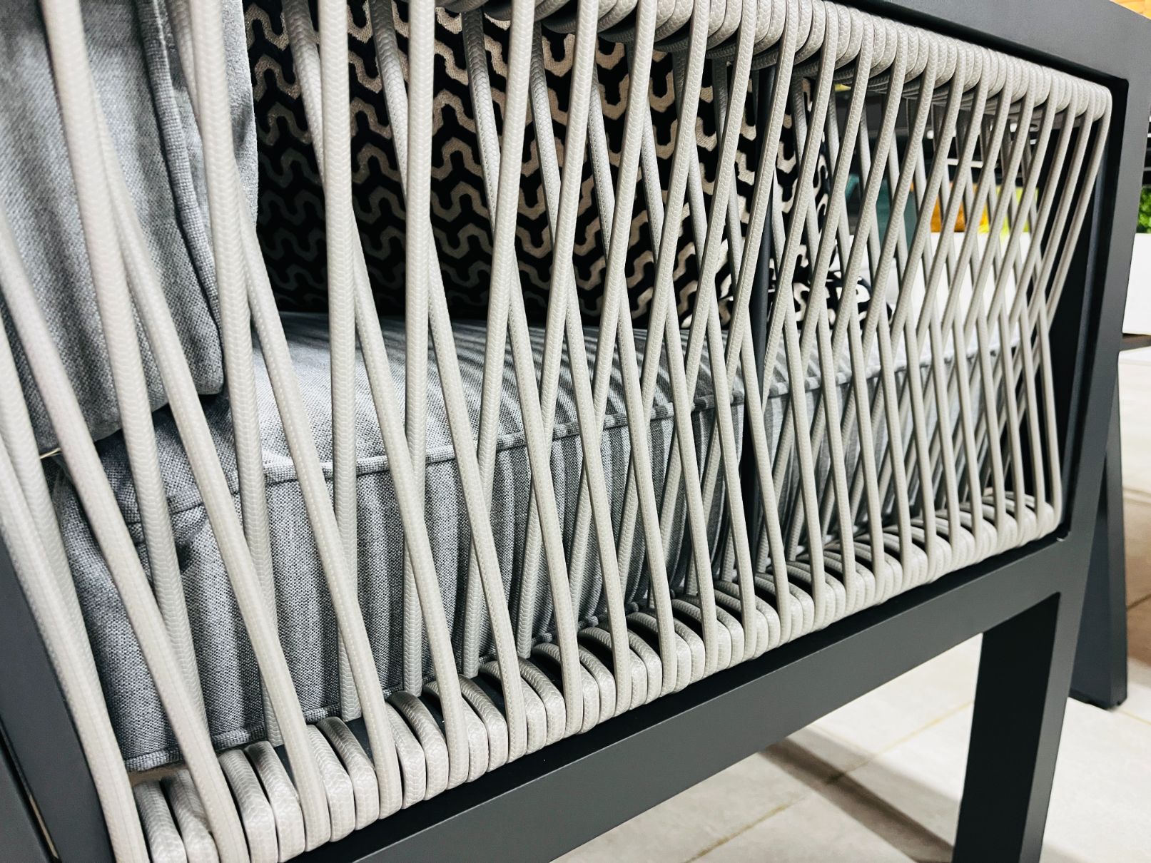 The new mix and blend of powder coated aluminium frames combined with a hard wearing but stylish rope finish will make this a fantastic choice for any garden. With extra thick cushions, a ceramic glass table top and non corrosive powder coated frames, the seville range will keep your set looking fresh and feeling comfortable all year round.