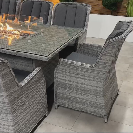 Chimes - Stone Grey Bella 8 Seat Rectangular Dining Set - 1 Meter x 2 Meter Rectangular Table With Firepit Table