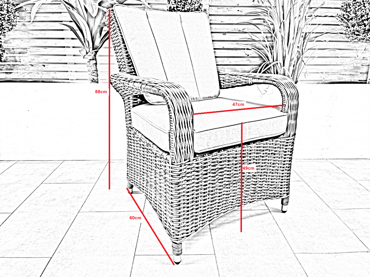 The Verona chairs are our premium garden chair ideal for dining but also the perfect evening chair. The sloped back on the chair is ideal for relaxing in the evenings and also throughout the day with upmost comfort in mind. Sit back, relax and enjoy a cold beverage on those sunny evenings. With full round weave around the edge of the arms and flat weave for the rest of the chair you are getting the best quality finish available. The high back chairs are ideal for dining and make the perfect evening chair to relax in. They are still a nice evening chair but ideal for that upright feeling.