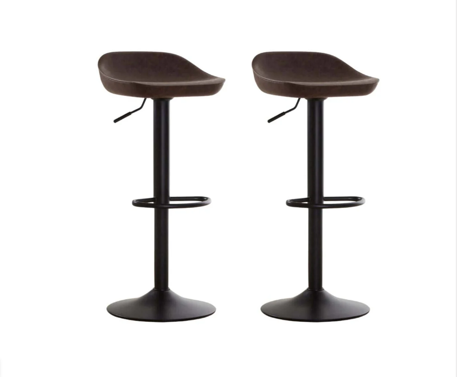 In stock & ready for deliveryWith a brown mocha leather effect seat and black base, the Dakota Bar Stool adds a modern aesthetic to any space. This comfy bar stool has a padded mocha leather effect seat which curves at the back for support and a footrest, the height adjusting lever adds to its practicality whilst the vintage mocha seat and matte black base create a sleek modern aesthetic.