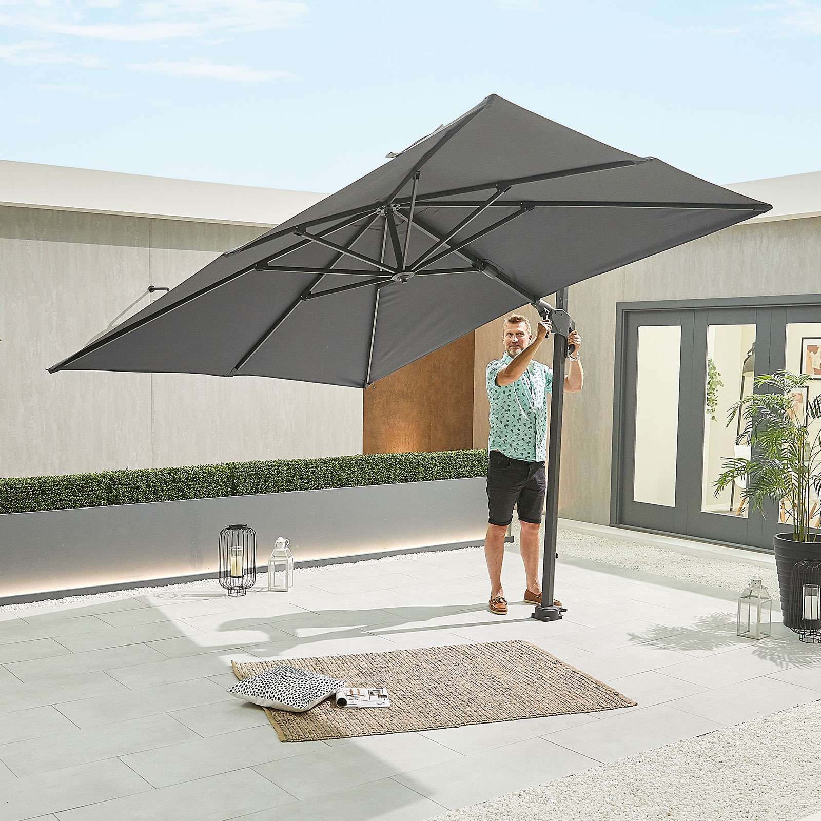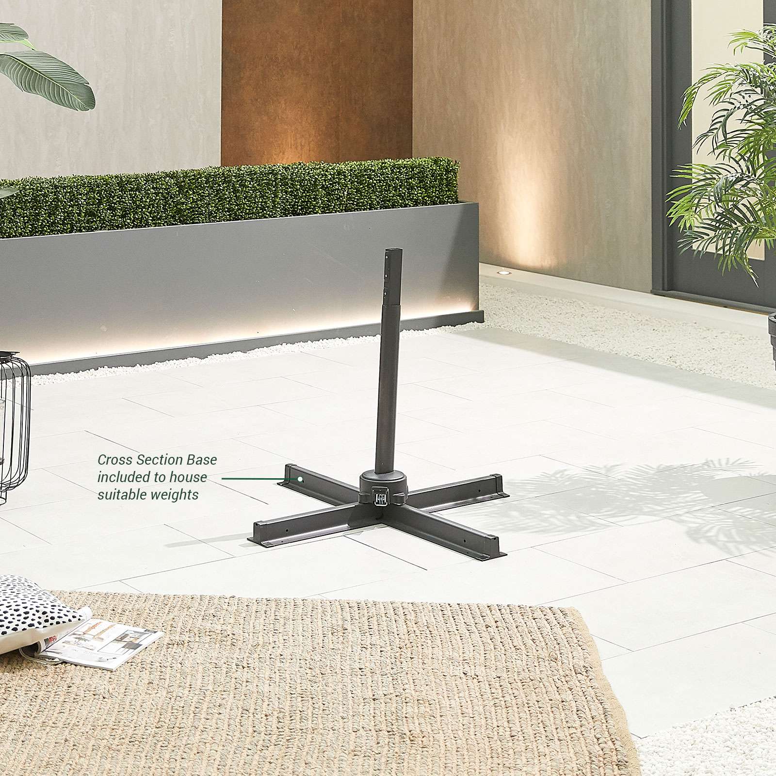 The Nova - Genesis 3m x 2.5m Rectangular Cantilever Aluminium Garden Parasol - Crank & Tilt - Grey can be used in conjunction with a cantilever base to be a parasol that stands over your garden furniture.