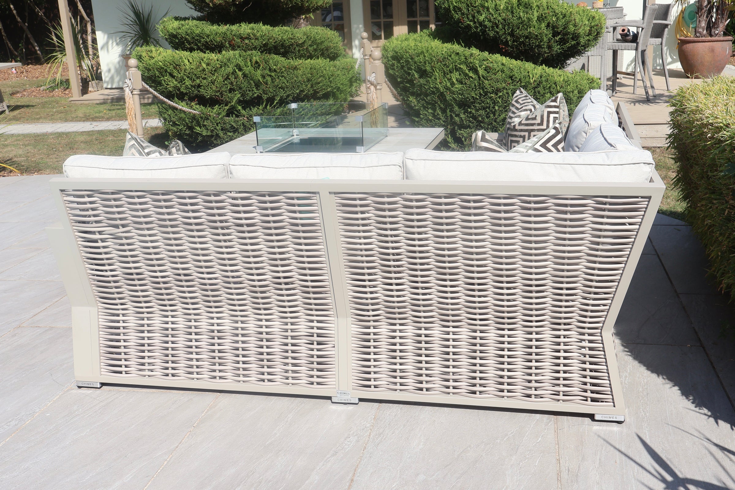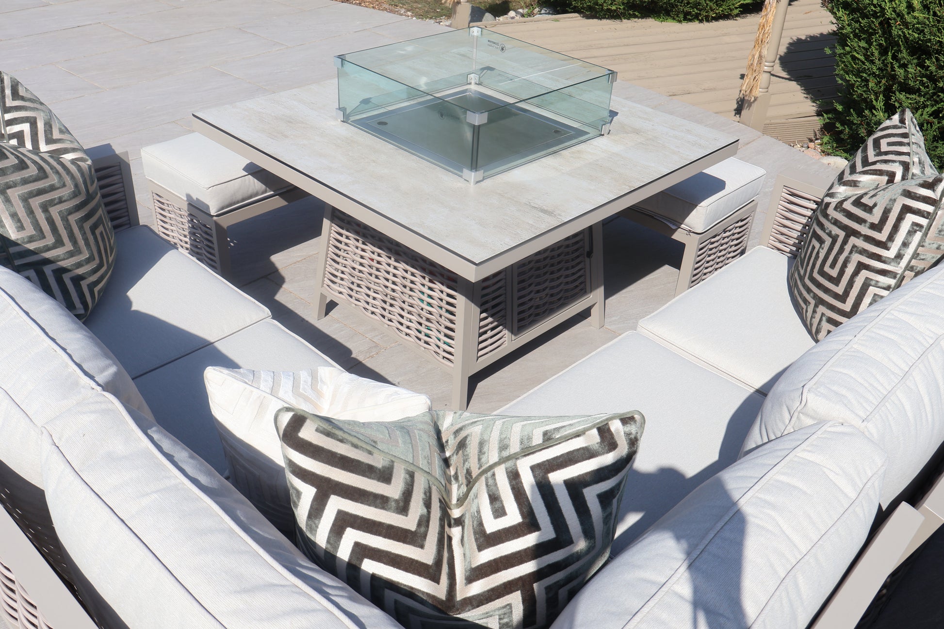 Chimes - Monaco Aluminium Compact Corner Dining Set with Firepit Table - Rope Weave - Cream