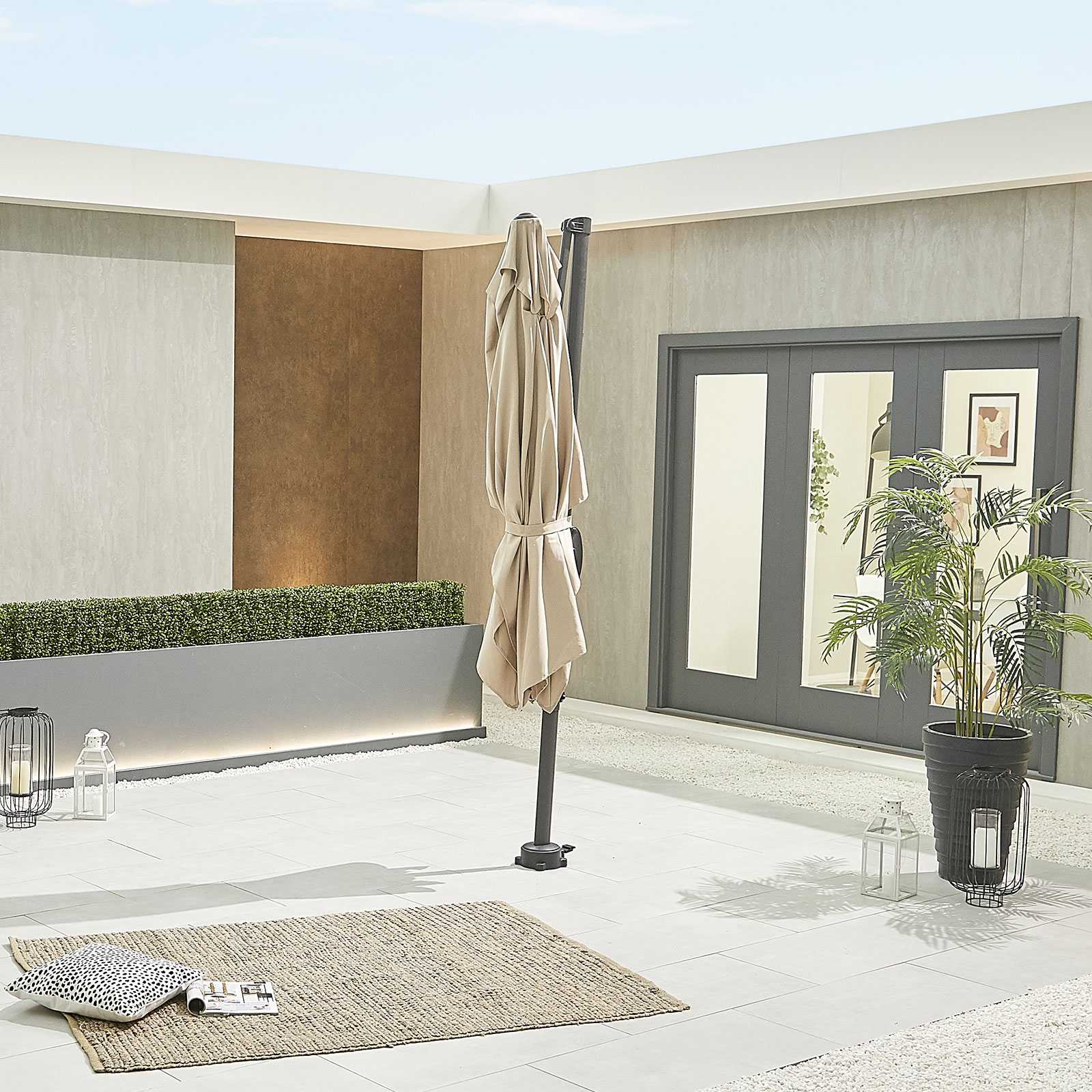 The Nova - Apollo 3m x 2m Rectangular Cantilever Aluminium Garden Parasol - Crank & Tilt - Beige can be used in conjuction with a cantilever base to be a parasol that stands over your garden furniture.