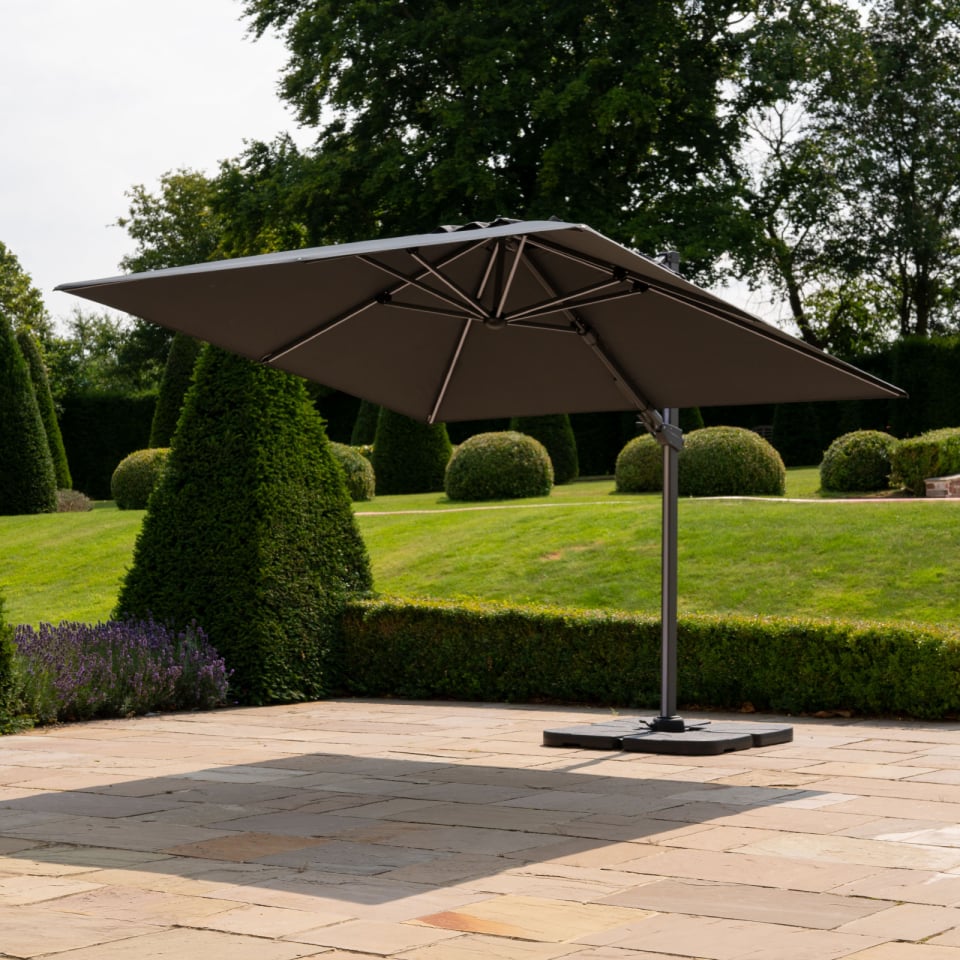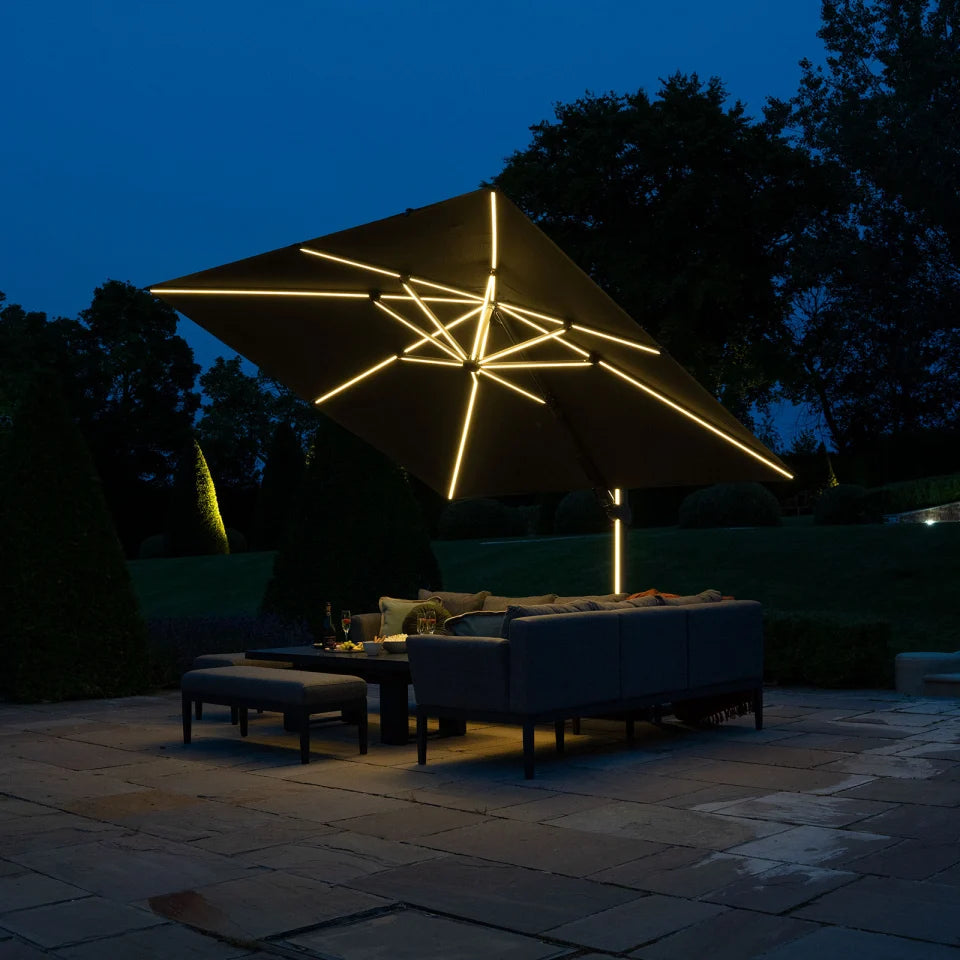 Introducing the Nova - Astra 3m Squared LED Cantilever Parasol - Grey - your ultimate shade companion for those sunny days and starlit nights! Say hello to relaxation and goodbye to harsh rays with this marvel of modern engineering.