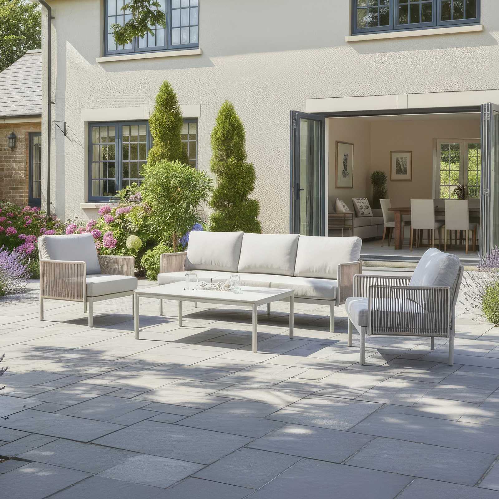 In stock & ready for deliveryAdd a touch of elegance to your outdoor space with the Nova - Hayden 3 Seater Sofa Set with Rectangular Coffee Table - Pebble, a perfect blend of modern design and refined details.