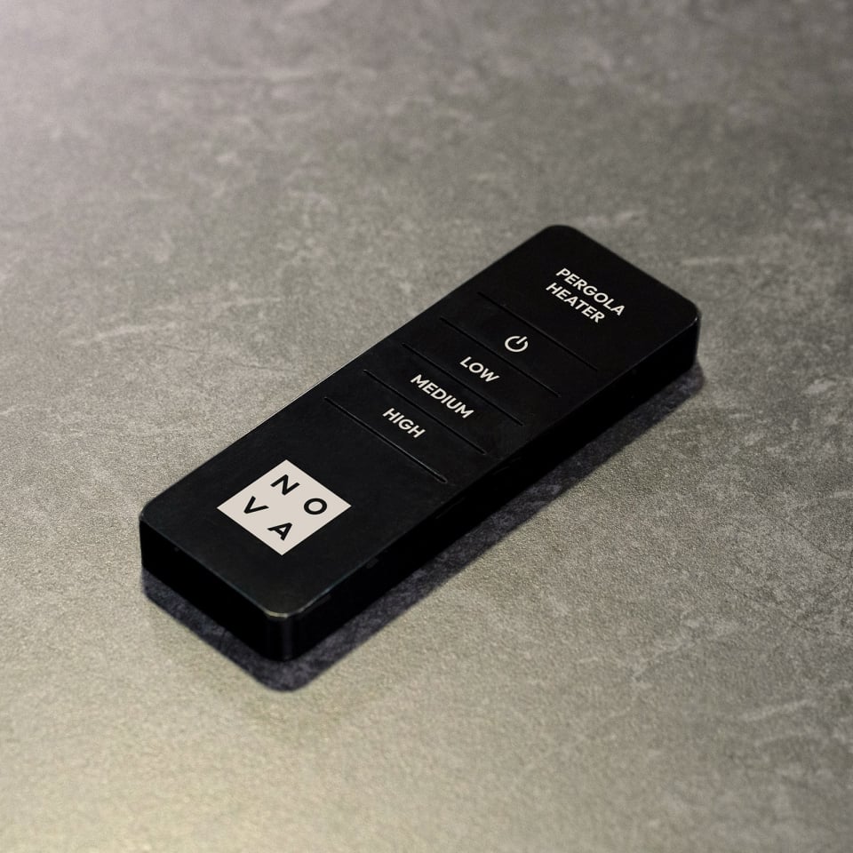 Perfect for extending outdoor enjoyment throughout the year, the heater is compatible with NOVA pergolas and can be easily wall-mounted, making it versatile for any outdoor setup. Choose from Low (800W), Medium (1400W), or High (2000W) to achieve your ideal level of comfort. Infrared technology delivers direct heat, unaffected by wind, for an instant, cost-effective solution. Adjust the settings without leaving your seat using the included remote.