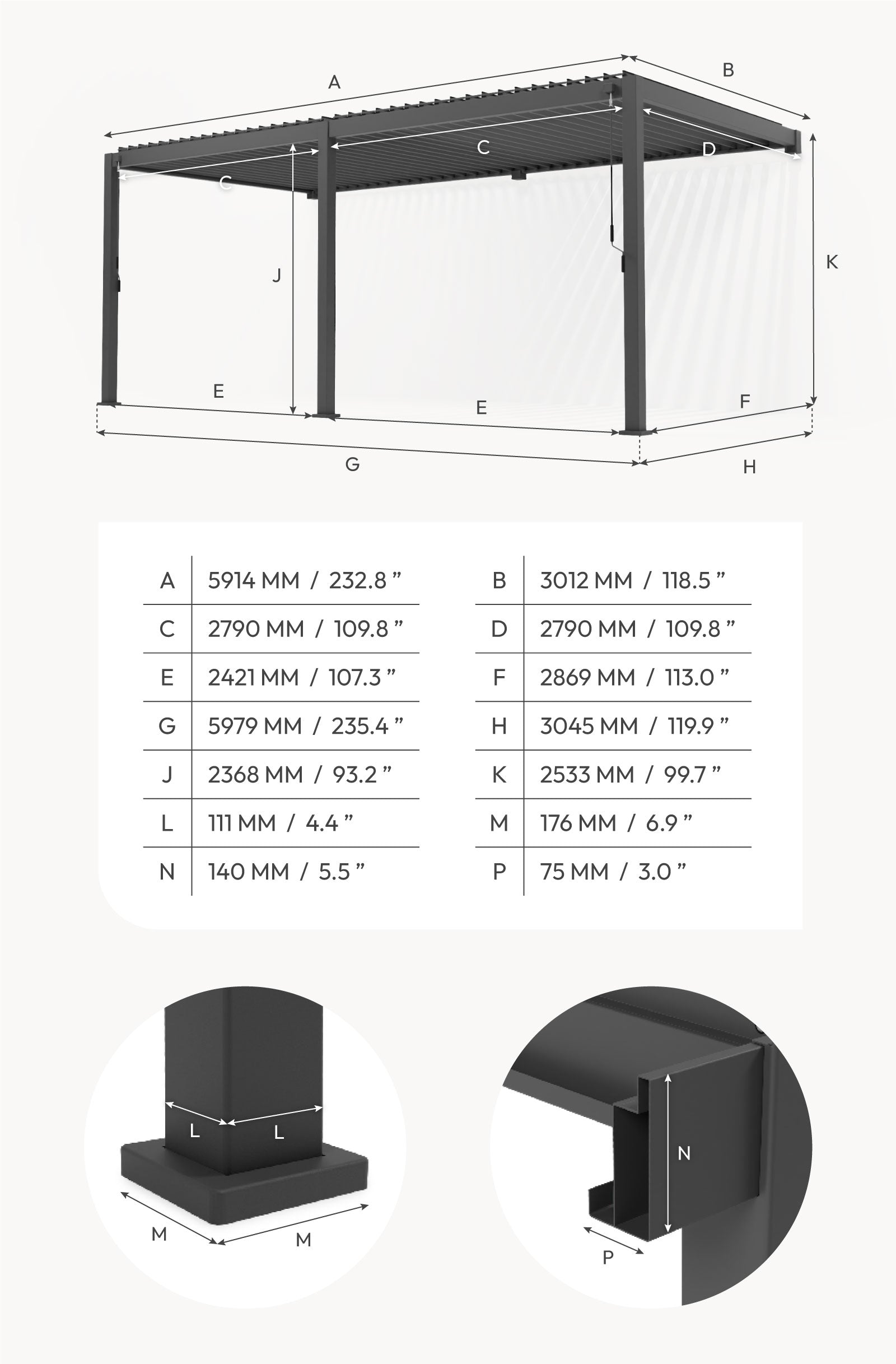 Additionally, we are proud to share that this collection of pergolas is finished with a TIGER Drylac powder coating which offers improved protection over standard powder coating and is more durable.