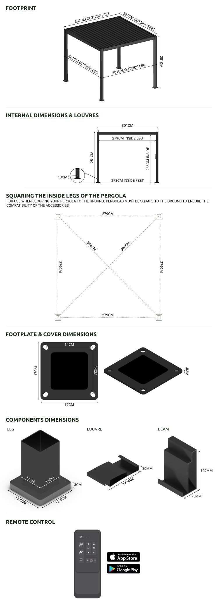 The Nova - Titan 3m x 3m Square Motorised LED Pergola in Grey shares the same design DNA as the Titan, but with big upgrades, making it the best-in-class pergola on the market.