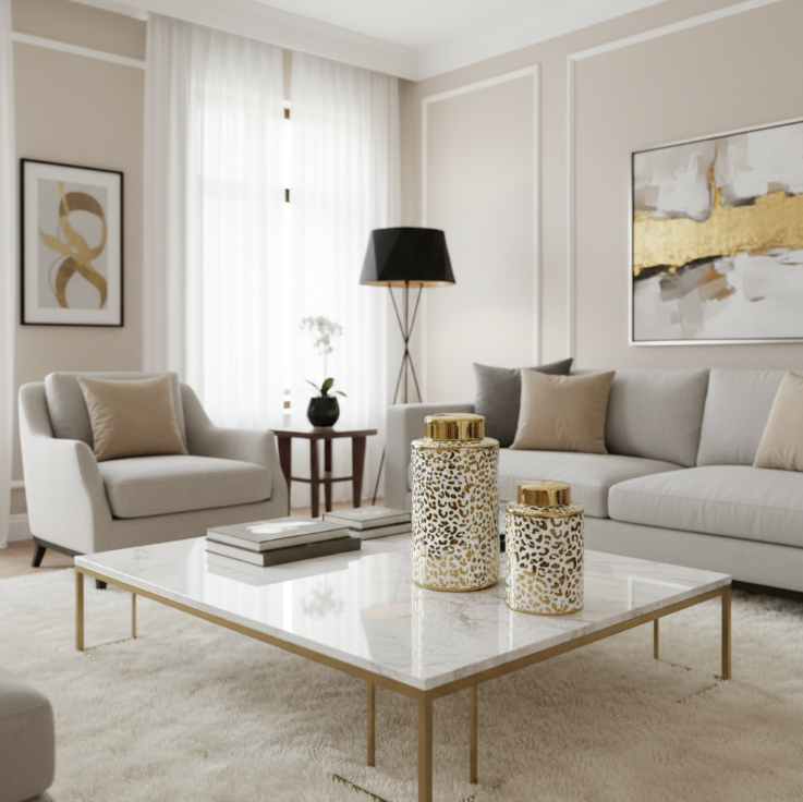 Add a touch of glamour and quirkiness to any room with our small gold and white leopard print Jars. Perfect for accessorising your home and styling trays, shelves or console tables.