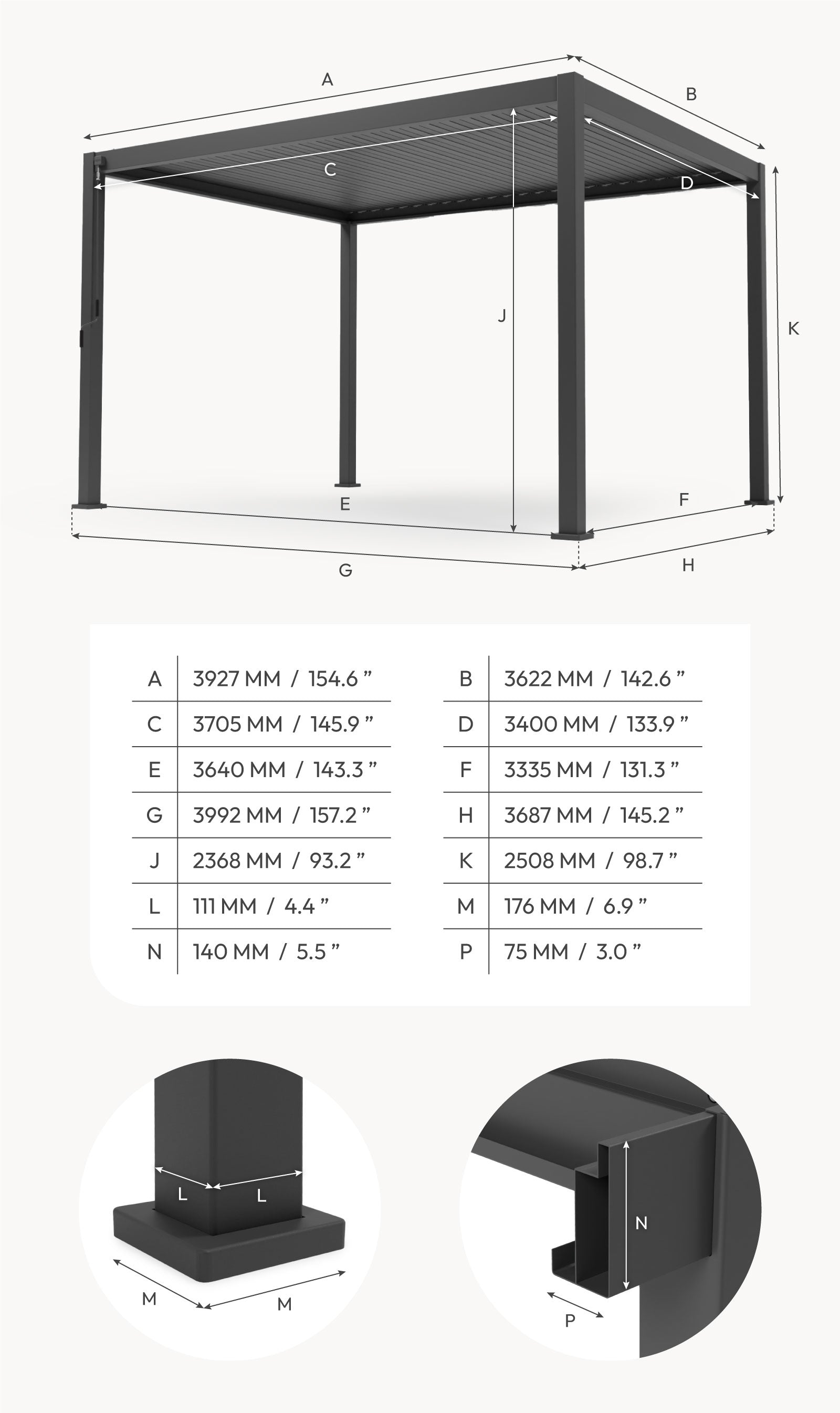 Nova - Titan Aluminium Pergola - 4m x 3.6m Rectangular - Pebble