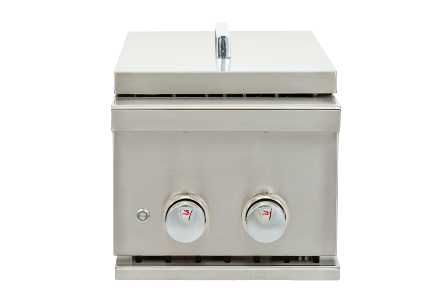 The Whistler Grills Black Burford Side Burner 5 is constructed from 304 stainless steel and made to match the style of your Whistler Black Burford 5 grill, this double side burner features two brass burners emitting 24,000 BTUs total heat output. Two blue LED lights illuminate the ignition knobs. Durable 7.5 mm stainless grates can handle pots of any weight. Comes standard with a stainless steel lid, black powder coated to a sleek finish to help protect against the elements.